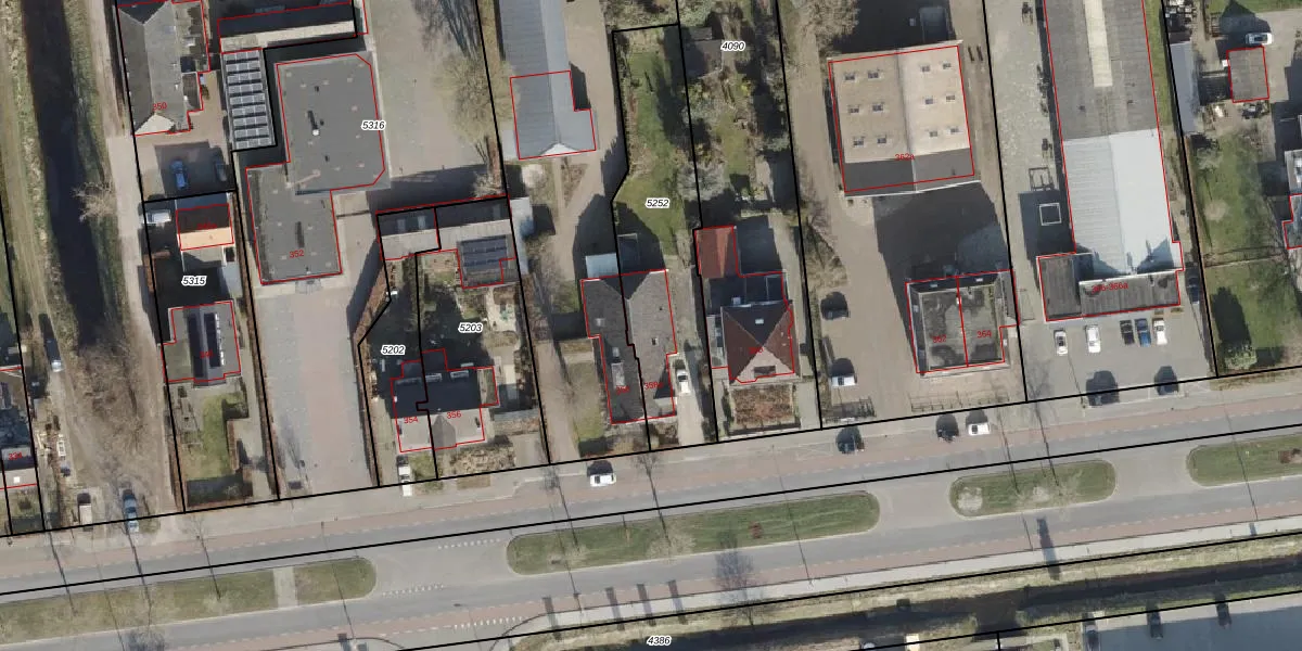 Gebruik de zoekbalk of klik op een perceel voor informatie over de adressen binnen dit perceel.