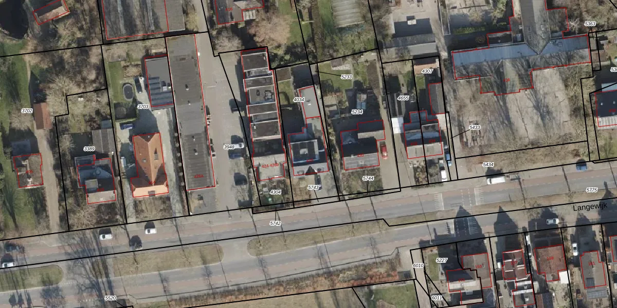 Het perceel waarop Langewijk 428 staat heeft een oppervlakte van 595 m². Dit is een groot perceel. De perceeloppervlakte wordt geregistreerd door het Kadaster. Gedetailleerde informatie over de maten van dit perceel kunt u vinden in het rapport Kadastrale kaart met maatvoering van Langewijk 428.