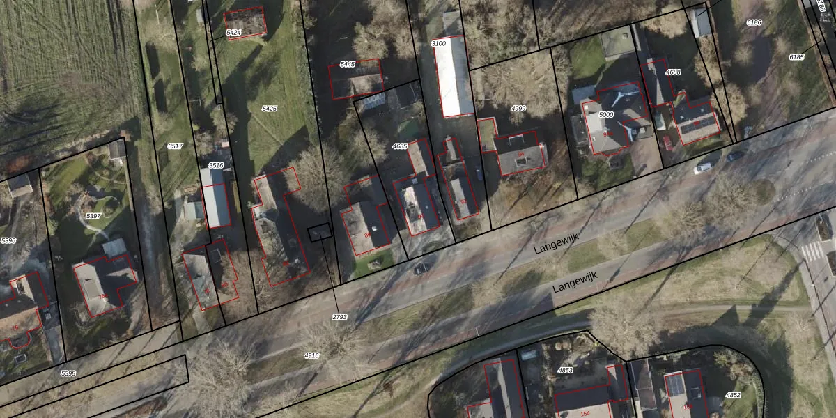 Het perceel waarop Langewijk 90 staat heeft een oppervlakte van 556 m². Dit is een groot perceel. De perceeloppervlakte wordt geregistreerd door het Kadaster. Gedetailleerde informatie over de maten van dit perceel kunt u vinden in het rapport Kadastrale kaart met maatvoering van Langewijk 90.