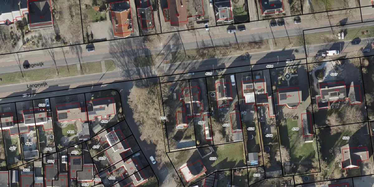 Het perceel waarop Langewijk 95 staat heeft een oppervlakte van 566 m². Dit is een groot perceel. De perceeloppervlakte wordt geregistreerd door het Kadaster. Gedetailleerde informatie over de maten van dit perceel kunt u vinden in het rapport Kadastrale kaart met maatvoering van Langewijk 95.