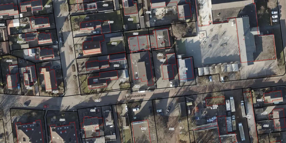 Latyrusstraat 12 is gelegen op kadastraal perceel AVE00H6716. Deze kadastrale aanduiding is uniek en wordt gebruikt door het Kadaster om eigendomsrechten en andere zakelijke rechten vast te leggen. Het perceel maakt onderdeel uit van de kadastrale gemeente Avereest.