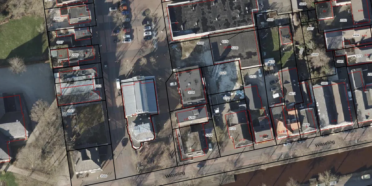 Het perceel waarop Markt 17-g staat heeft een oppervlakte van 400 m². Dit is een groot perceel. De perceeloppervlakte wordt geregistreerd door het Kadaster. Gedetailleerde informatie over de maten van dit perceel kunt u vinden in het rapport Kadastrale kaart met maatvoering van Markt 17-g.