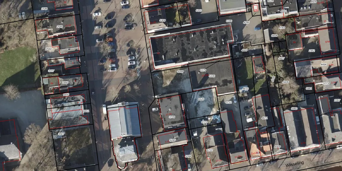 Het perceel waarop Markt 25-a staat heeft een oppervlakte van 343 m². Dit is een groot perceel. De perceeloppervlakte wordt geregistreerd door het Kadaster. Gedetailleerde informatie over de maten van dit perceel kunt u vinden in het rapport Kadastrale kaart met maatvoering van Markt 25-a.
