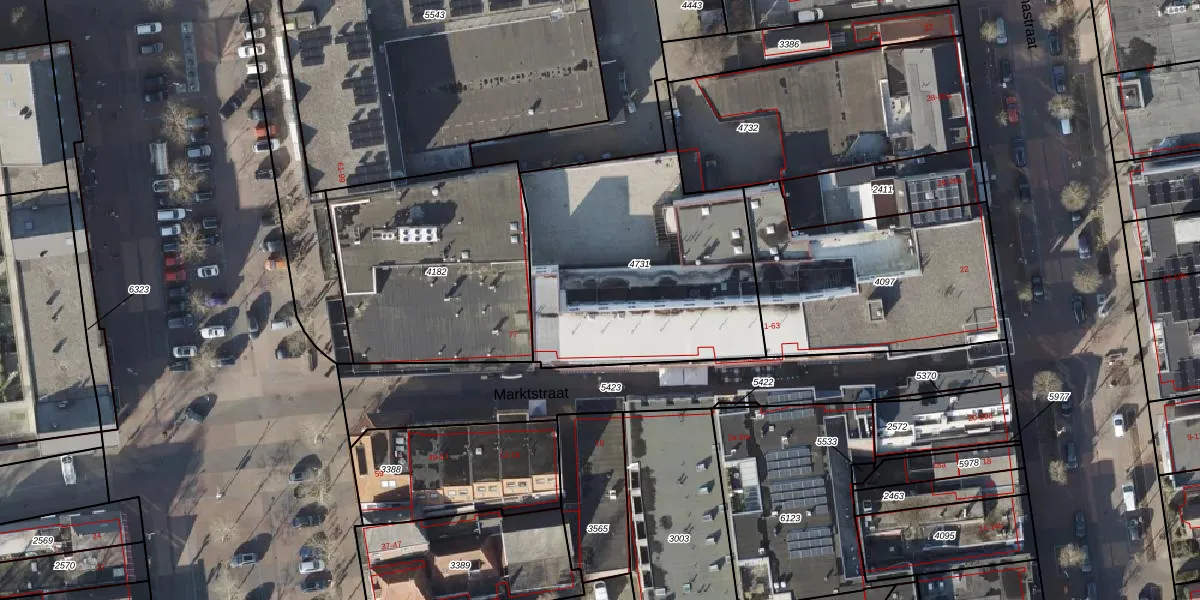 Het perceel waarop Marktstraat 17 staat heeft een oppervlakte van 1244 m². Dit is een zeer groot perceel. De perceeloppervlakte wordt geregistreerd door het Kadaster. Gedetailleerde informatie over de maten van dit perceel kunt u vinden in het rapport Kadastrale kaart met maatvoering van Marktstraat 17.