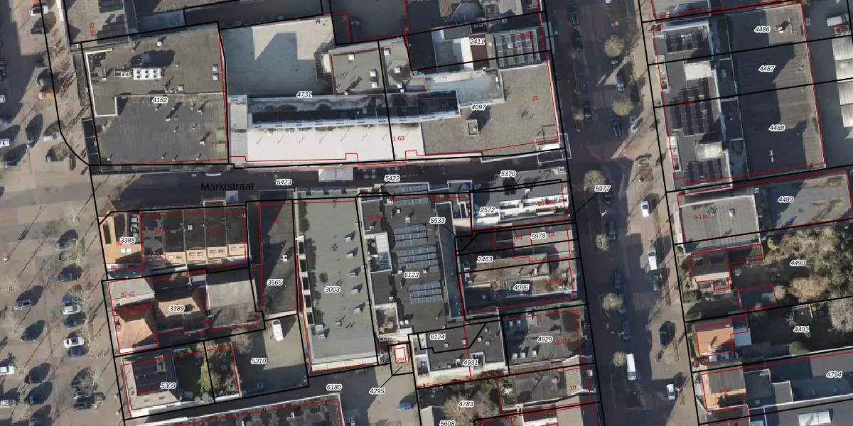 Het perceel waarop Marktstraat 2-g staat heeft een oppervlakte van 793 m². Dit is een groot perceel. De perceeloppervlakte wordt geregistreerd door het Kadaster. Gedetailleerde informatie over de maten van dit perceel kunt u vinden in het rapport Kadastrale kaart met maatvoering van Marktstraat 2-g.