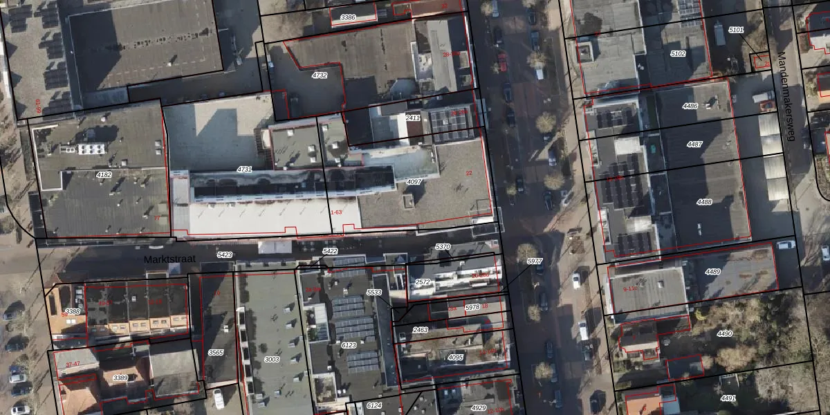 Het perceel waarop Marktstraat 27 staat heeft een oppervlakte van 942 m². Dit is een groot perceel. De perceeloppervlakte wordt geregistreerd door het Kadaster. Gedetailleerde informatie over de maten van dit perceel kunt u vinden in het rapport Kadastrale kaart met maatvoering van Marktstraat 27.