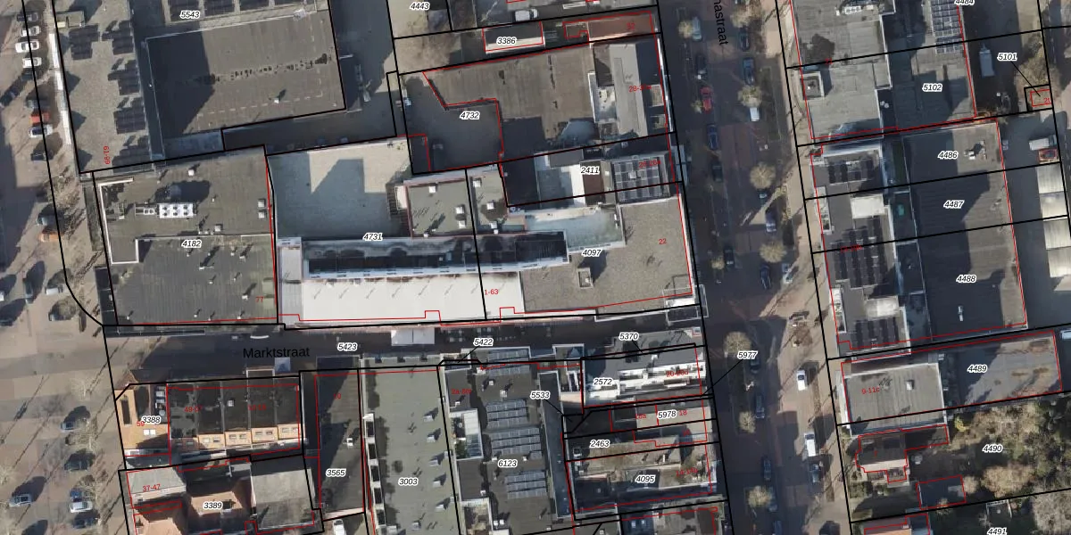 Het perceel waarop Marktstraat 41 staat heeft een oppervlakte van 942 m². Dit is een groot perceel. De perceeloppervlakte wordt geregistreerd door het Kadaster. Gedetailleerde informatie over de maten van dit perceel kunt u vinden in het rapport Kadastrale kaart met maatvoering van Marktstraat 41.