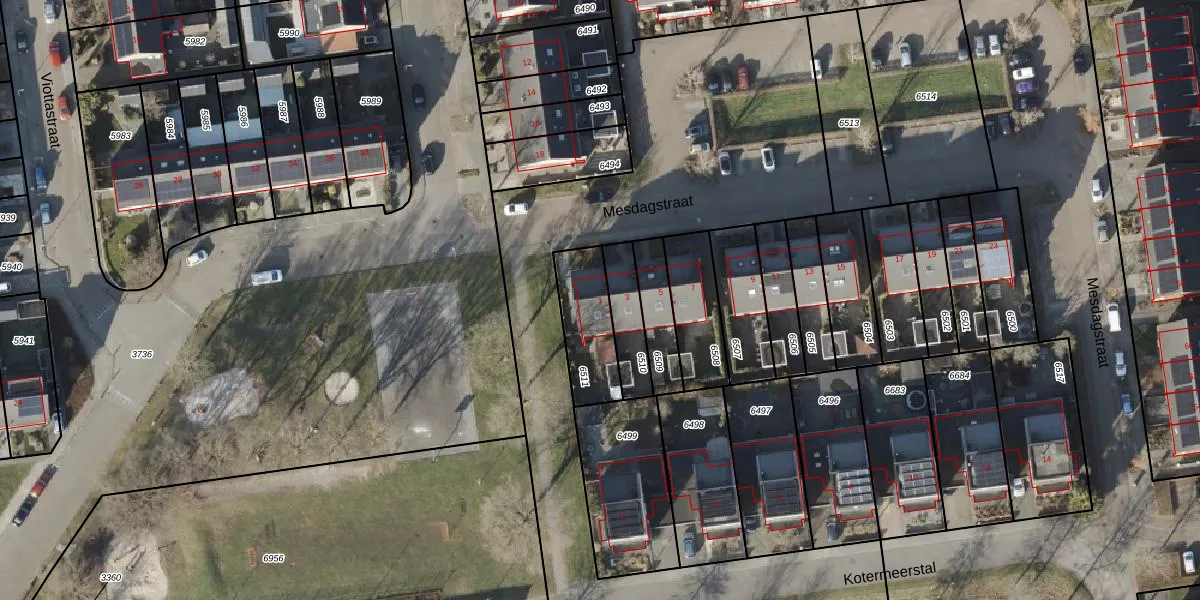 Het perceel waarop Mesdagstraat 1 staat heeft een oppervlakte van 214 m². Dit is een middelgroot perceel. De perceeloppervlakte wordt geregistreerd door het Kadaster. Gedetailleerde informatie over de maten van dit perceel kunt u vinden in het rapport Kadastrale kaart met maatvoering van Mesdagstraat 1.