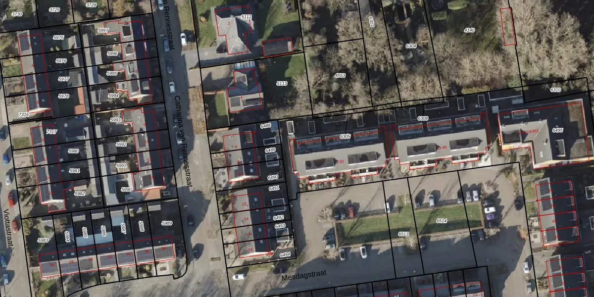 Het perceel waarop Mesdagstraat 10 staat heeft een oppervlakte van 4715 m². Dit is een zeer groot perceel. De perceeloppervlakte wordt geregistreerd door het Kadaster. Gedetailleerde informatie over de maten van dit perceel kunt u vinden in het rapport Kadastrale kaart met maatvoering van Mesdagstraat 10.