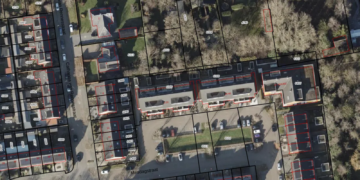 Het perceel waarop Mesdagstraat 20 staat heeft een oppervlakte van 4715 m². Dit is een zeer groot perceel. De perceeloppervlakte wordt geregistreerd door het Kadaster. Gedetailleerde informatie over de maten van dit perceel kunt u vinden in het rapport Kadastrale kaart met maatvoering van Mesdagstraat 20.