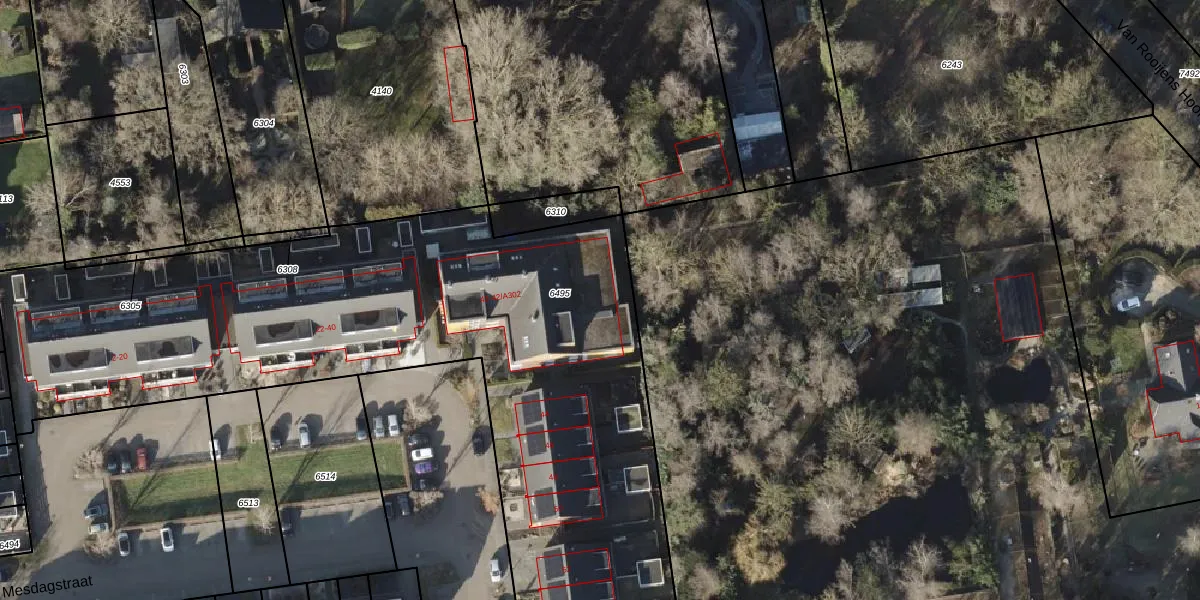 Mesdagstraat 42-A105 is gelegen op kadastraal perceel AVE00K6495. Deze kadastrale aanduiding is uniek en wordt gebruikt door het Kadaster om eigendomsrechten en andere zakelijke rechten vast te leggen. Het perceel maakt onderdeel uit van de kadastrale gemeente Avereest.