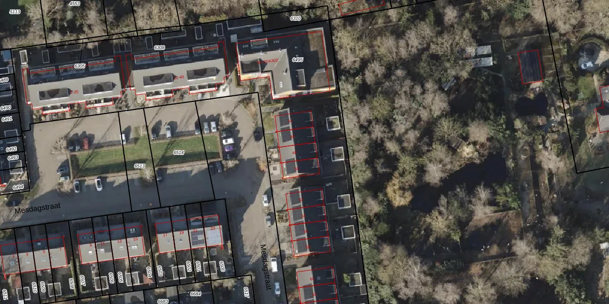 Het perceel waarop Mesdagstraat 48 staat heeft een oppervlakte van 4715 m². Dit is een zeer groot perceel. De perceeloppervlakte wordt geregistreerd door het Kadaster. Gedetailleerde informatie over de maten van dit perceel kunt u vinden in het rapport Kadastrale kaart met maatvoering van Mesdagstraat 48.