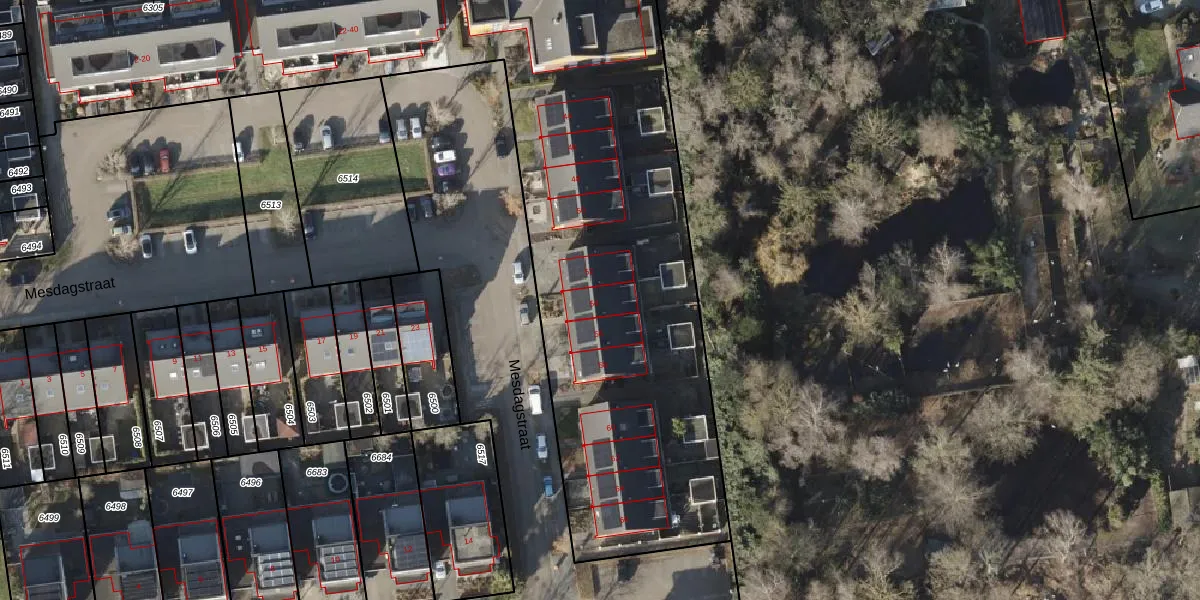Het perceel waarop Mesdagstraat 54 staat heeft een oppervlakte van 4715 m². Dit is een zeer groot perceel. De perceeloppervlakte wordt geregistreerd door het Kadaster. Gedetailleerde informatie over de maten van dit perceel kunt u vinden in het rapport Kadastrale kaart met maatvoering van Mesdagstraat 54.