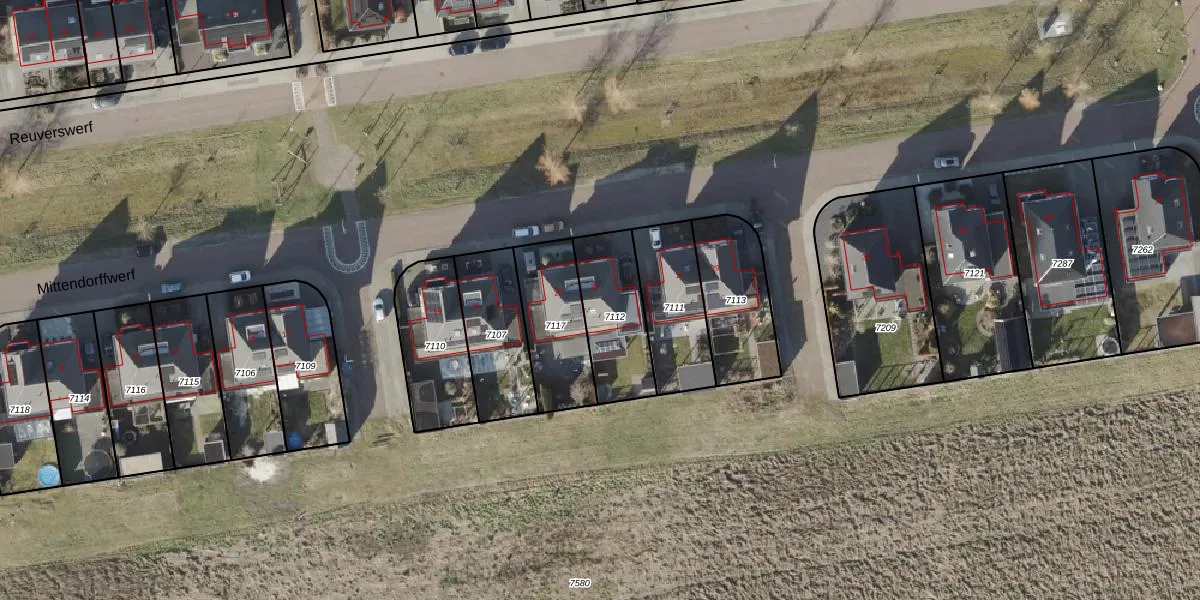 Het perceel waarop Mittendorffwerf 25 staat heeft een oppervlakte van 280 m². Dit is een middelgroot perceel. De perceeloppervlakte wordt geregistreerd door het Kadaster. Gedetailleerde informatie over de maten van dit perceel kunt u vinden in het rapport Kadastrale kaart met maatvoering van Mittendorffwerf 25.