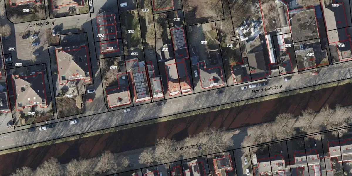 Het perceel waarop Moerheimstraat 34 staat heeft een oppervlakte van 462 m². Dit is een groot perceel. De perceeloppervlakte wordt geregistreerd door het Kadaster. Gedetailleerde informatie over de maten van dit perceel kunt u vinden in het rapport Kadastrale kaart met maatvoering van Moerheimstraat 34.