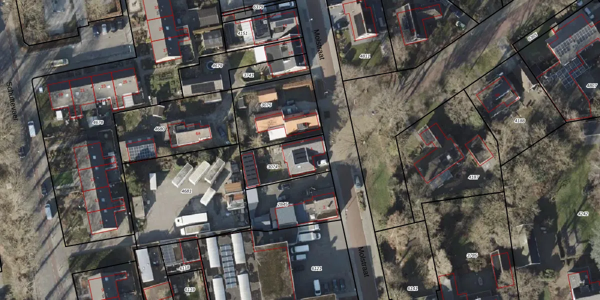 Het perceel waarop Molstraat 4 staat heeft een oppervlakte van 372 m². Dit is een groot perceel. De perceeloppervlakte wordt geregistreerd door het Kadaster. Gedetailleerde informatie over de maten van dit perceel kunt u vinden in het rapport Kadastrale kaart met maatvoering van Molstraat 4.