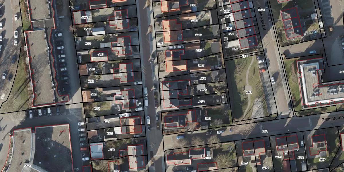Gebruik de zoekbalk of klik op een perceel voor informatie over de adressen binnen dit perceel.