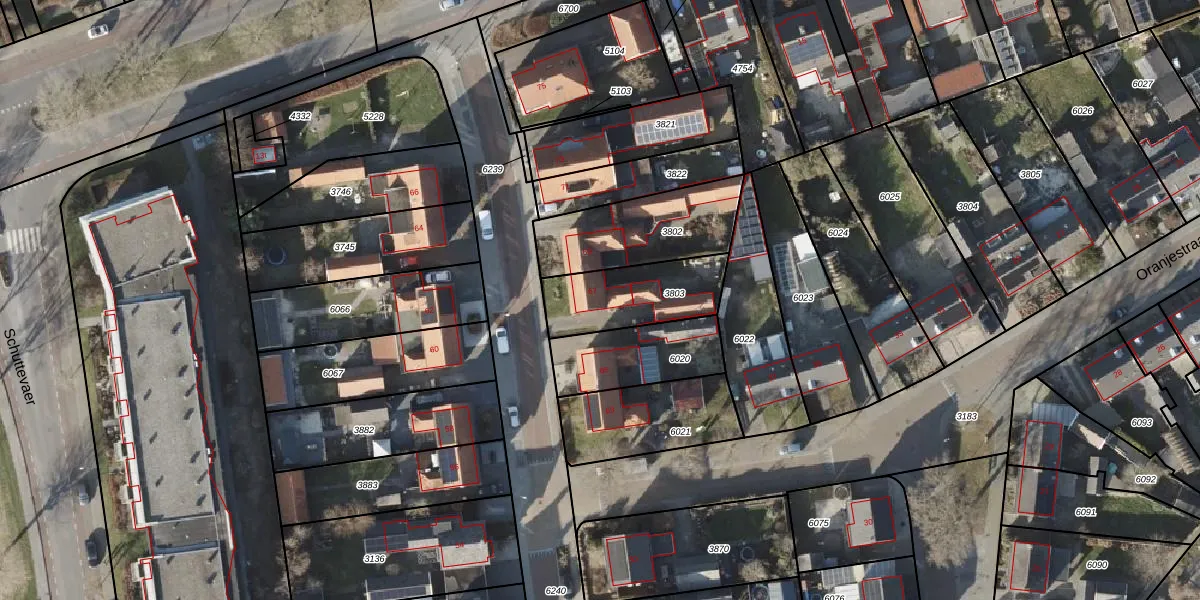Gebruik de zoekbalk of klik op een perceel voor informatie over de adressen binnen dit perceel.