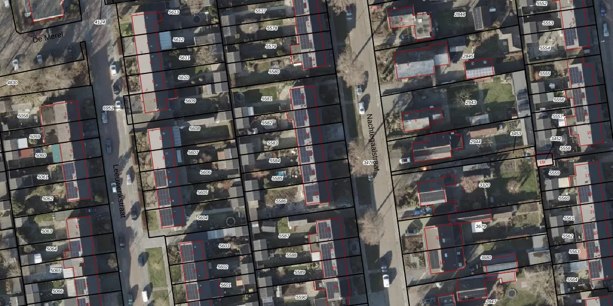 Het perceel waarop Nachtegaalstraat 19 staat heeft een oppervlakte van 213 m². Dit is een middelgroot perceel. De perceeloppervlakte wordt geregistreerd door het Kadaster. Gedetailleerde informatie over de maten van dit perceel kunt u vinden in het rapport Kadastrale kaart met maatvoering van Nachtegaalstraat 19.