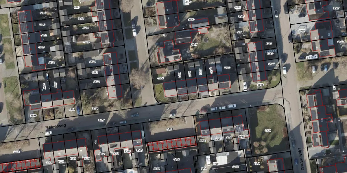 Gebruik de zoekbalk of klik op een perceel voor informatie over de adressen binnen dit perceel.