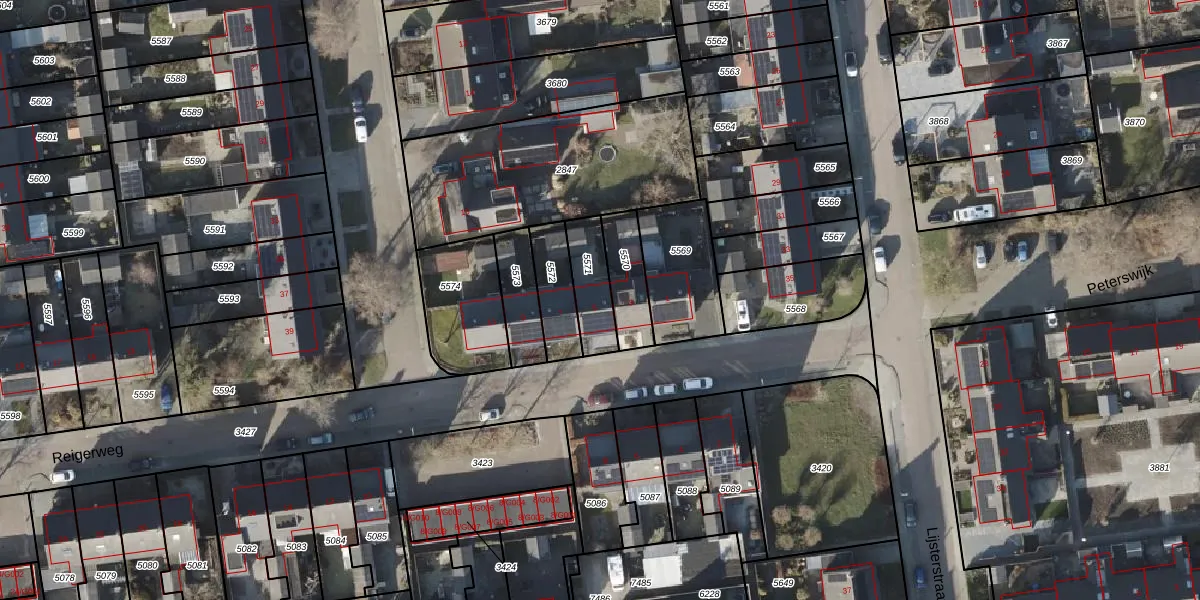 Gebruik de zoekbalk of klik op een perceel voor informatie over de adressen binnen dit perceel.