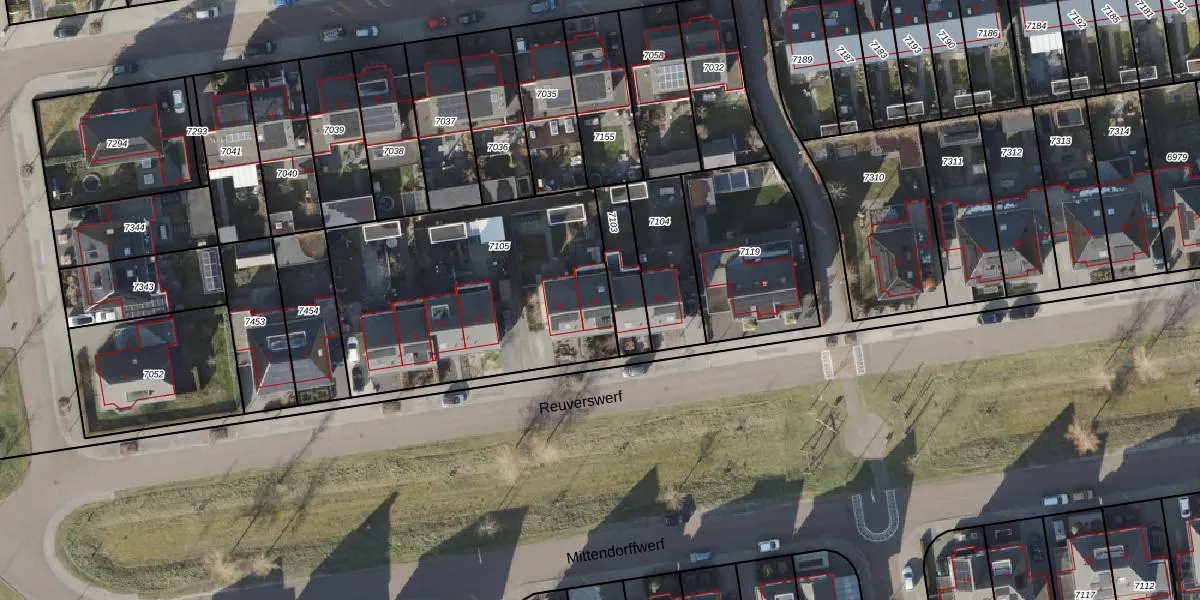 Het perceel waarop Reuverswerf 16 staat heeft een oppervlakte van 1295 m². Dit is een zeer groot perceel. De perceeloppervlakte wordt geregistreerd door het Kadaster. Gedetailleerde informatie over de maten van dit perceel kunt u vinden in het rapport Kadastrale kaart met maatvoering van Reuverswerf 16.