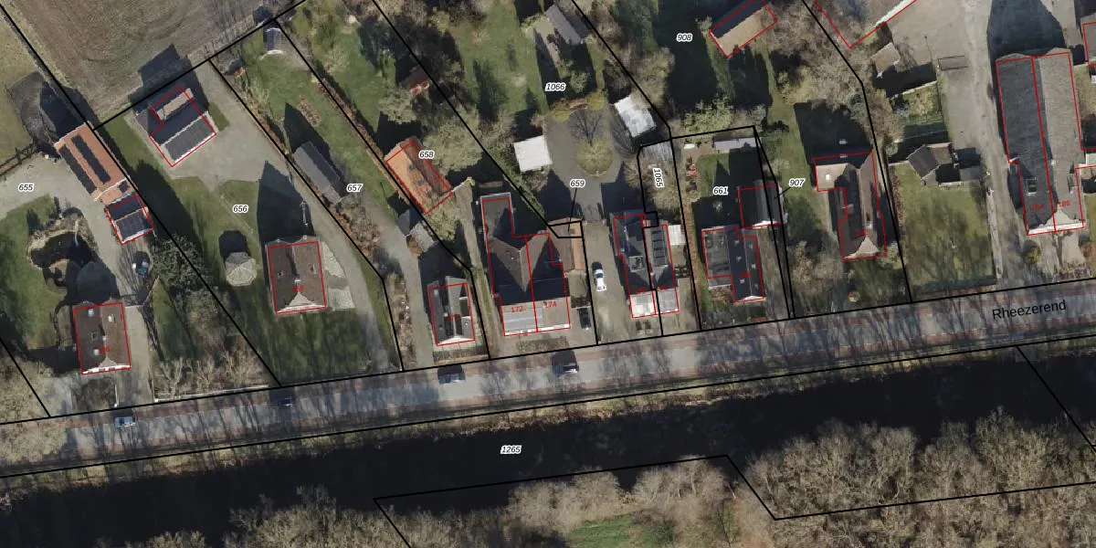 Het perceel waarop Rheezerend 174 staat heeft een oppervlakte van 1351 m². Dit is een zeer groot perceel. De perceeloppervlakte wordt geregistreerd door het Kadaster. Gedetailleerde informatie over de maten van dit perceel kunt u vinden in het rapport Kadastrale kaart met maatvoering van Rheezerend 174.