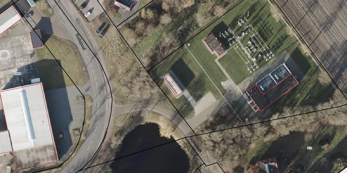 Het perceel waarop Rollepaal 7-t staat heeft een oppervlakte van 5387 m². Dit is een zeer groot perceel. De perceeloppervlakte wordt geregistreerd door het Kadaster. Gedetailleerde informatie over de maten van dit perceel kunt u vinden in het rapport Kadastrale kaart met maatvoering van Rollepaal 7-t.