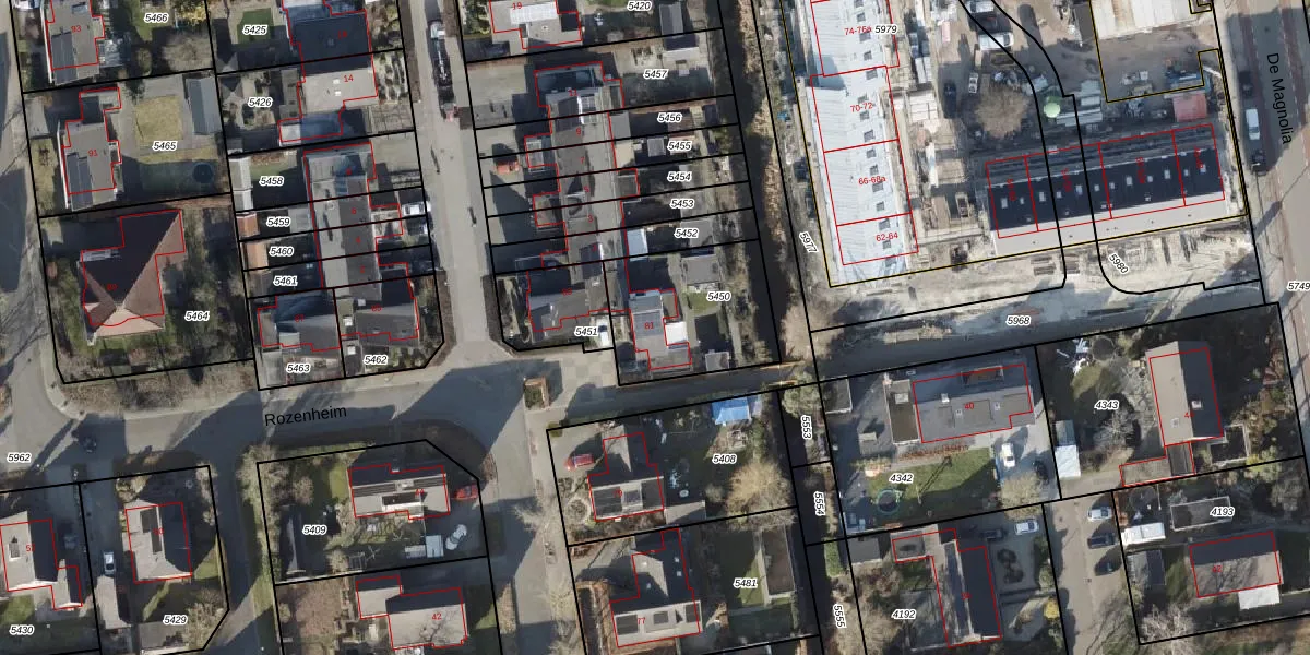 Het perceel waarop Rozenheim 81 staat heeft een oppervlakte van 469 m². Dit is een groot perceel. De perceeloppervlakte wordt geregistreerd door het Kadaster. Gedetailleerde informatie over de maten van dit perceel kunt u vinden in het rapport Kadastrale kaart met maatvoering van Rozenheim 81.