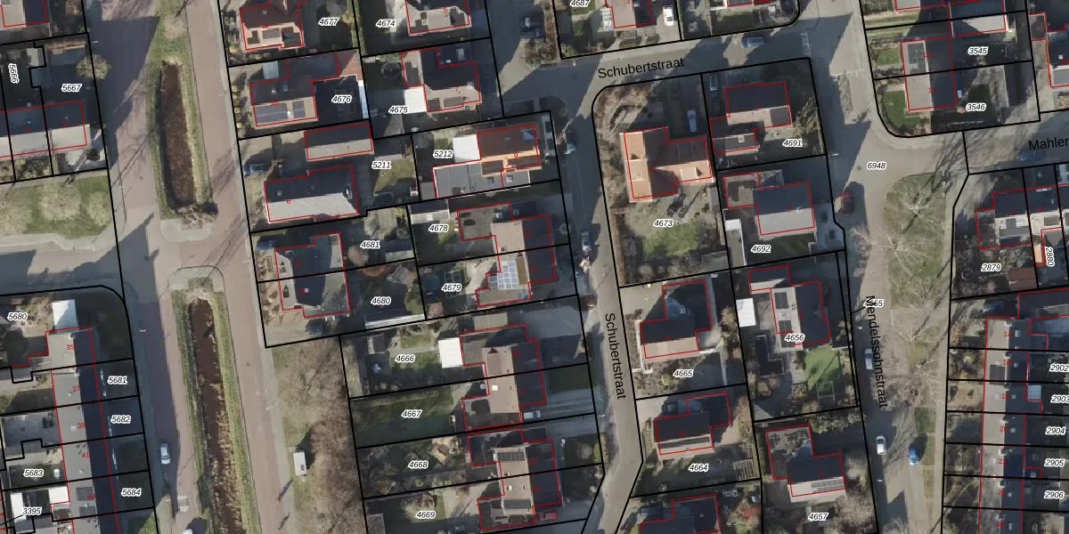 Gebruik de zoekbalk of klik op een perceel voor informatie over de adressen binnen dit perceel.