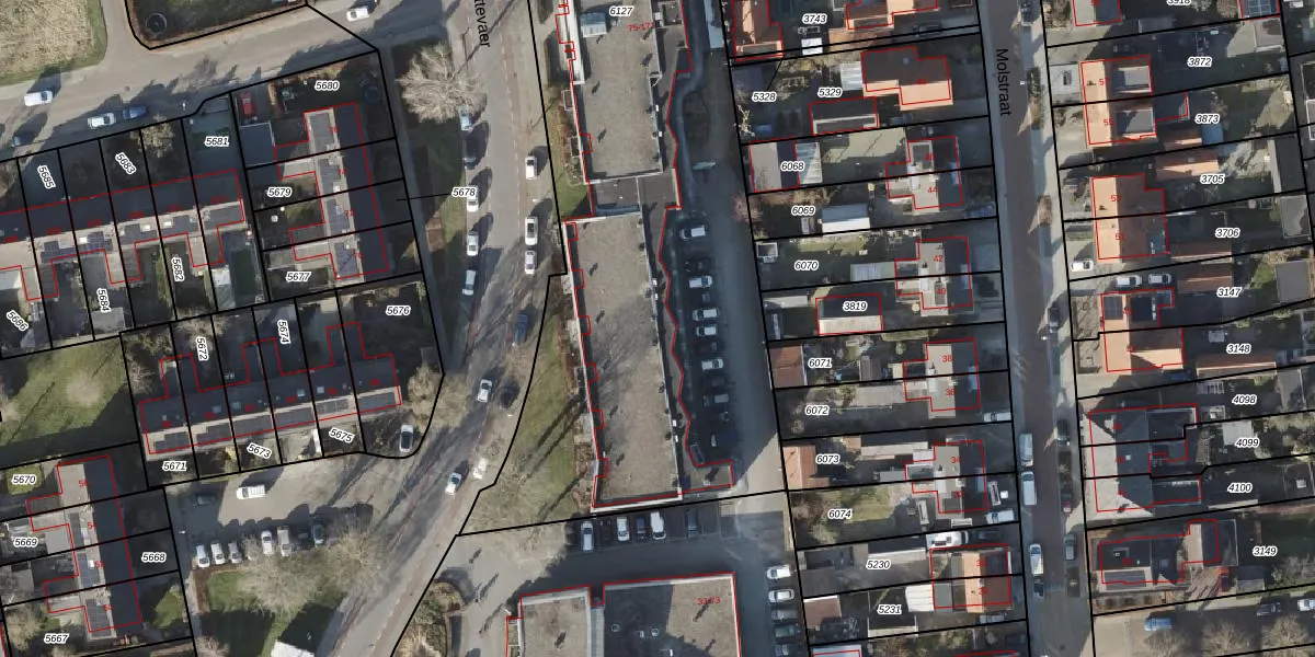 Het perceel waarop Schuttevaer 141 staat heeft een oppervlakte van 5100 m². Dit is een zeer groot perceel. De perceeloppervlakte wordt geregistreerd door het Kadaster. Gedetailleerde informatie over de maten van dit perceel kunt u vinden in het rapport Kadastrale kaart met maatvoering van Schuttevaer 141.