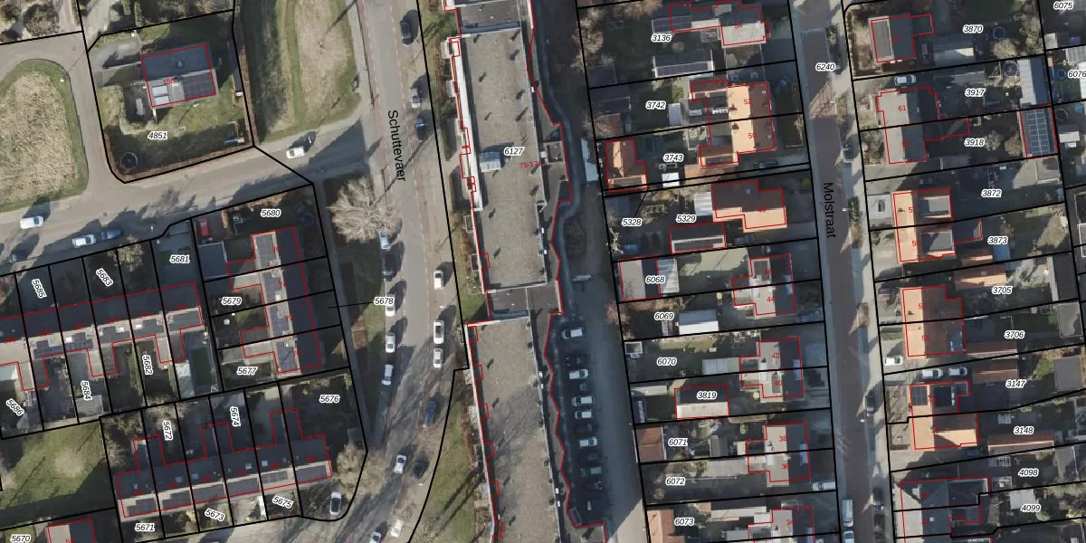 Het perceel waarop Schuttevaer 151 staat heeft een oppervlakte van 5100 m². Dit is een zeer groot perceel. De perceeloppervlakte wordt geregistreerd door het Kadaster. Gedetailleerde informatie over de maten van dit perceel kunt u vinden in het rapport Kadastrale kaart met maatvoering van Schuttevaer 151.