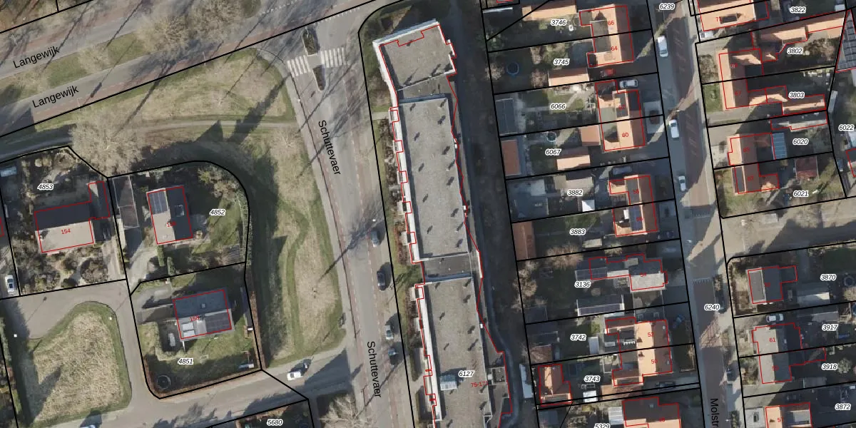 Het perceel waarop Schuttevaer 89 staat heeft een oppervlakte van 5100 m². Dit is een zeer groot perceel. De perceeloppervlakte wordt geregistreerd door het Kadaster. Gedetailleerde informatie over de maten van dit perceel kunt u vinden in het rapport Kadastrale kaart met maatvoering van Schuttevaer 89.