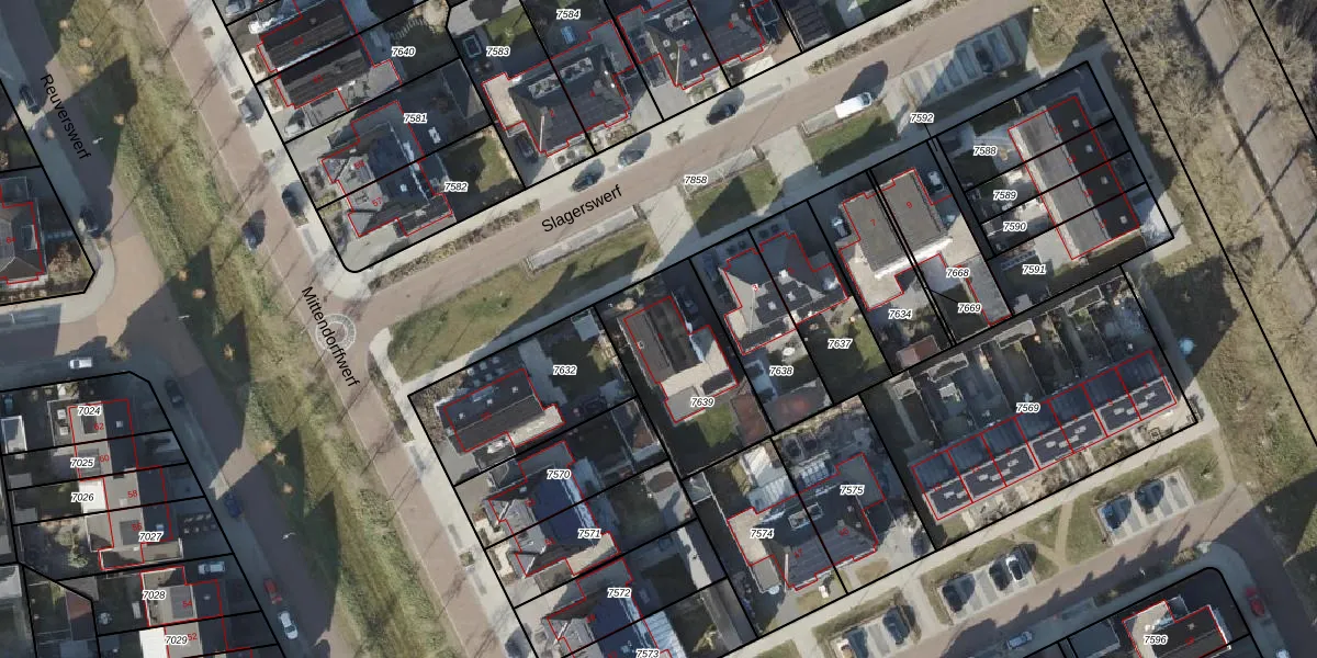 Het perceel waarop Slagerswerf 1 staat heeft een oppervlakte van 482 m². Dit is een groot perceel. De perceeloppervlakte wordt geregistreerd door het Kadaster. Gedetailleerde informatie over de maten van dit perceel kunt u vinden in het rapport Kadastrale kaart met maatvoering van Slagerswerf 1.