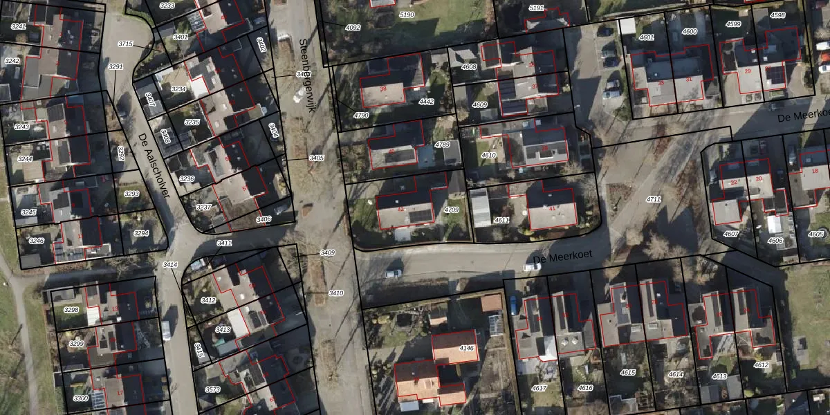 Het perceel waarop Steenbergerwijk 42 staat heeft een oppervlakte van 501 m². Dit is een groot perceel. De perceeloppervlakte wordt geregistreerd door het Kadaster. Gedetailleerde informatie over de maten van dit perceel kunt u vinden in het rapport Kadastrale kaart met maatvoering van Steenbergerwijk 42.