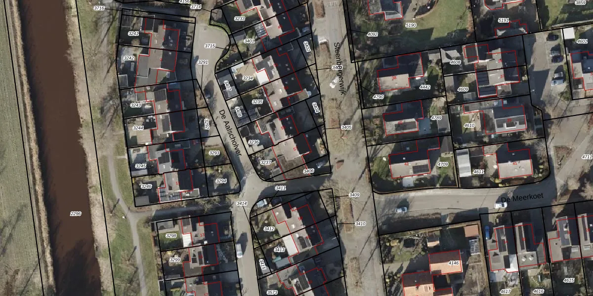 Gebruik de zoekbalk of klik op een perceel voor informatie over de adressen binnen dit perceel.