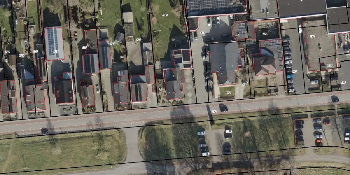 Gebruik de zoekbalk of klik op een perceel voor informatie over de adressen binnen dit perceel.