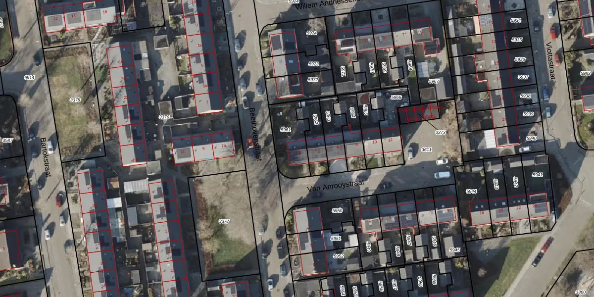 De informatie over dit adres is afkomstig uit officiële overheidsregistraties, voornamelijk de Basisregistratie Adressen en Gebouwen (BAG) en de Basisregistratie Kadaster (BRK). Deze gegevens worden beheerd door respectievelijk gemeenten en het Kadaster, en worden regelmatig bijgewerkt. Energielabelgegevens komen uit de database van de Rijksdienst voor Ondernemend Nederland (RVO).