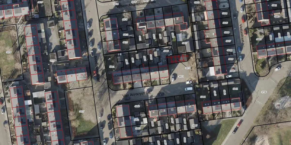Het perceel waarop Van Anrooystraat 8 staat heeft een oppervlakte van 163 m². Dit is een middelgroot perceel. De perceeloppervlakte wordt geregistreerd door het Kadaster. Gedetailleerde informatie over de maten van dit perceel kunt u vinden in het rapport Kadastrale kaart met maatvoering van Van Anrooystraat 8.