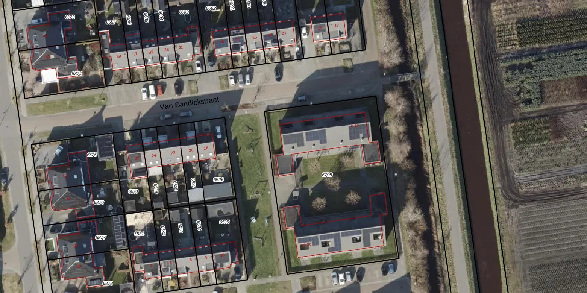 Het perceel waarop Van Sandickstraat 16 staat heeft een oppervlakte van 2155 m². Dit is een zeer groot perceel. De perceeloppervlakte wordt geregistreerd door het Kadaster. Gedetailleerde informatie over de maten van dit perceel kunt u vinden in het rapport Kadastrale kaart met maatvoering van Van Sandickstraat 16.
