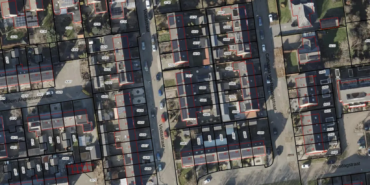 Het perceel waarop Viottastraat 12 staat heeft een oppervlakte van 180 m². Dit is een middelgroot perceel. De perceeloppervlakte wordt geregistreerd door het Kadaster. Gedetailleerde informatie over de maten van dit perceel kunt u vinden in het rapport Kadastrale kaart met maatvoering van Viottastraat 12.