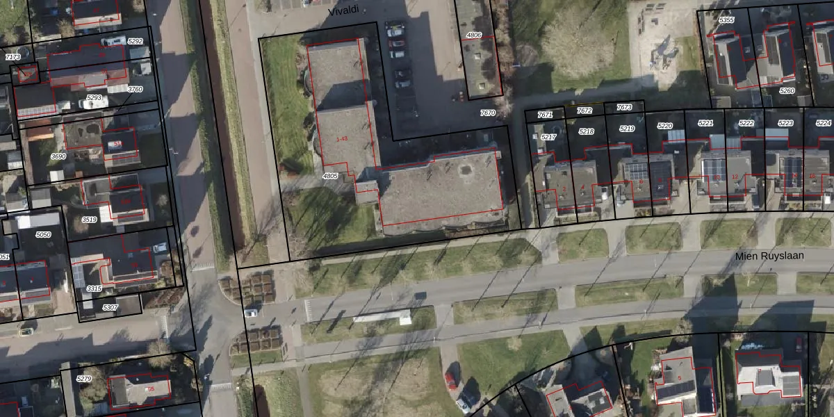 Het perceel waarop Vivaldi 11 staat heeft een oppervlakte van 2223 m². Dit is een zeer groot perceel. De perceeloppervlakte wordt geregistreerd door het Kadaster. Gedetailleerde informatie over de maten van dit perceel kunt u vinden in het rapport Kadastrale kaart met maatvoering van Vivaldi 11.