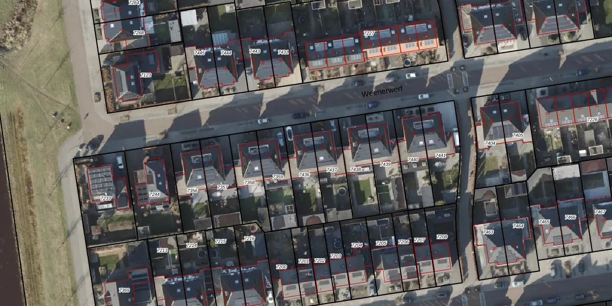 Het perceel waarop Weenerwerf 13 staat heeft een oppervlakte van 300 m². Dit is een groot perceel. De perceeloppervlakte wordt geregistreerd door het Kadaster. Gedetailleerde informatie over de maten van dit perceel kunt u vinden in het rapport Kadastrale kaart met maatvoering van Weenerwerf 13.