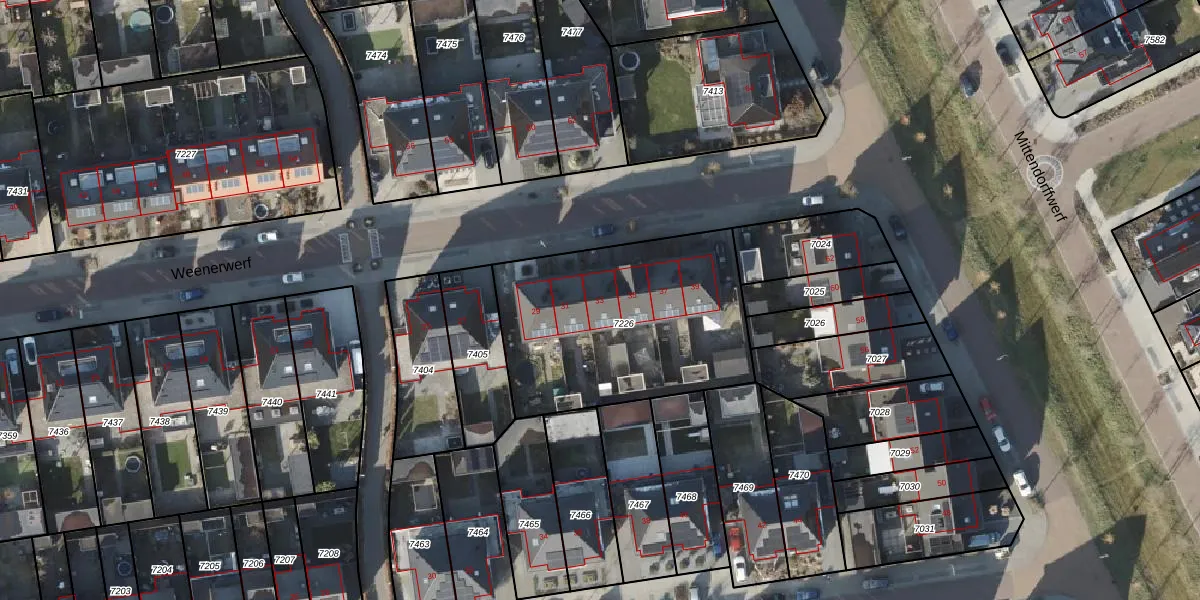 Weenerwerf 33 is gelegen op kadastraal perceel AVE00K7226. Deze kadastrale aanduiding is uniek en wordt gebruikt door het Kadaster om eigendomsrechten en andere zakelijke rechten vast te leggen. Het perceel maakt onderdeel uit van de kadastrale gemeente Avereest.