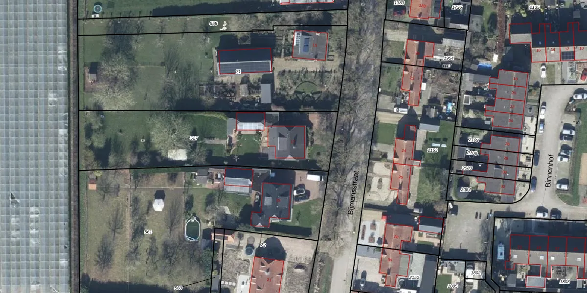 Het perceel waarop Bijmansstraat 17 staat heeft een oppervlakte van 1710 m². Dit is een zeer groot perceel. De perceeloppervlakte wordt geregistreerd door het Kadaster. Gedetailleerde informatie over de maten van dit perceel kunt u vinden in het rapport Kadastrale kaart met maatvoering van Bijmansstraat 17.