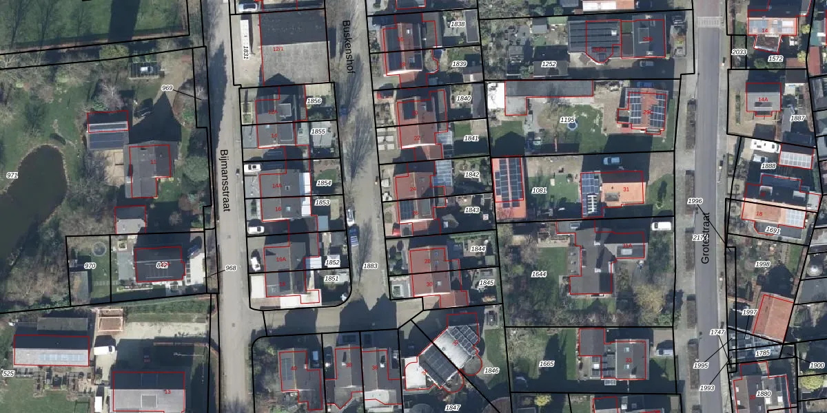 Gebruik de zoekbalk of klik op een perceel voor informatie over de adressen binnen dit perceel.
