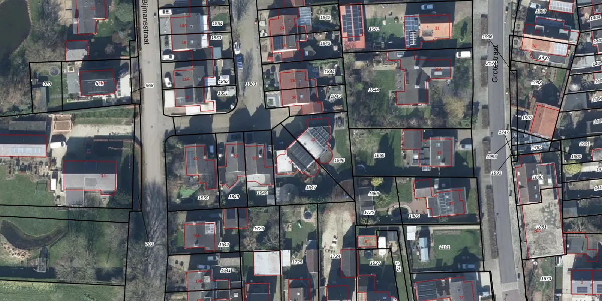 Gebruik de zoekbalk of klik op een perceel voor informatie over de adressen binnen dit perceel.