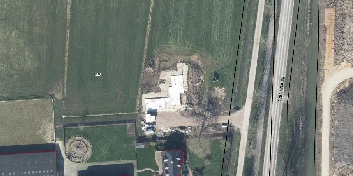 Het perceel waarop Deestersteeg 3 staat heeft een oppervlakte van 2,4 ha. Dit is een zeer groot perceel. De perceeloppervlakte wordt geregistreerd door het Kadaster. Gedetailleerde informatie over de maten van dit perceel kunt u vinden in het rapport Kadastrale kaart met maatvoering van Deestersteeg 3.