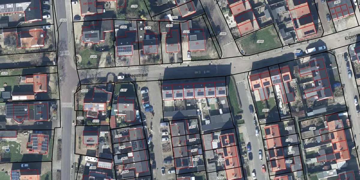 Het perceel waarop Elzenstraat 32 staat heeft een oppervlakte van 970 m². Dit is een groot perceel. De perceeloppervlakte wordt geregistreerd door het Kadaster. Gedetailleerde informatie over de maten van dit perceel kunt u vinden in het rapport Kadastrale kaart met maatvoering van Elzenstraat 32.