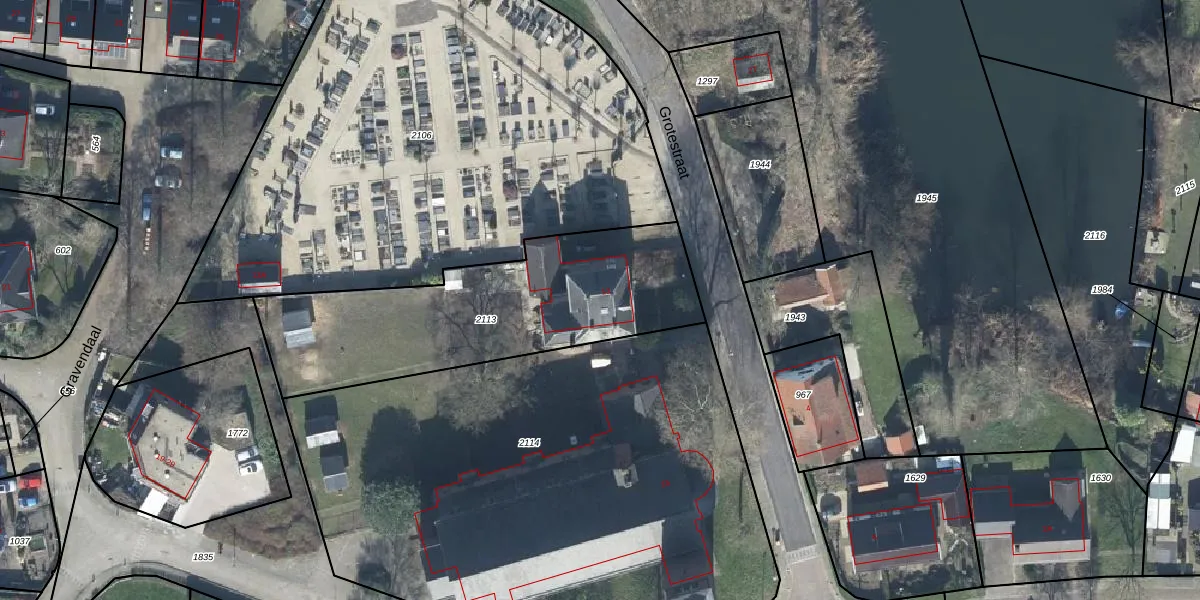Grotestraat 13 is gelegen op kadastraal perceel AFD00B2113. Deze kadastrale aanduiding is uniek en wordt gebruikt door het Kadaster om eigendomsrechten en andere zakelijke rechten vast te leggen. Het perceel maakt onderdeel uit van de kadastrale gemeente Afferden.
